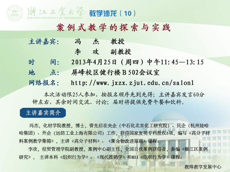 附網絡報名鏈接 http://www.jxzx.zjut.edu.cn/salon1