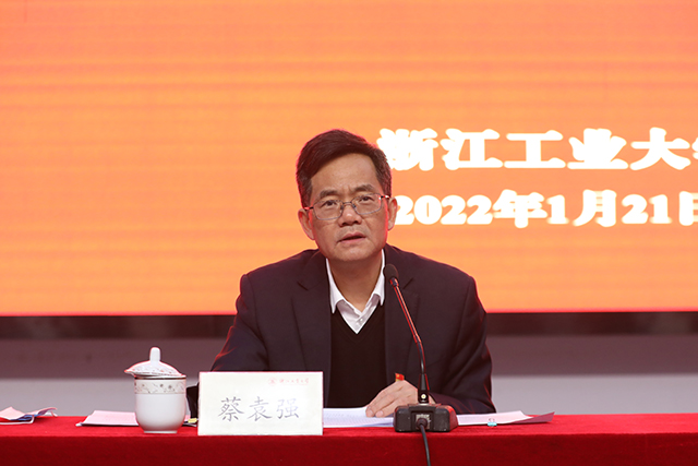 蔡袁強分析了黨史學習教育存在的不足,就深入貫徹落實習近平總書記主政浙江期間對學校提出的“建設成為各類優秀人才的培養基地和工程科學技術的研究開發基地”的重要指示,鞏固拓展黨史學習教育的成果,持續推進各項事業高質量內涵式發展提出了進一步要求。一要進一步深化學史明理,著力在思想旗幟引領上聚力用勁,堅定不移做“兩個確立”的忠誠擁護者、“兩個維護”的示范引領者。二要進一步深化學史增信,著力在理想信念領航上聚力用勁,堅定不移做“紅色根脈”的堅定守護者、“國之大者”的積極踐行者。三要進一步深化學史崇德,著力在品格本領錘煉上聚力用勁,堅定不移做“師生至上”的不懈奮斗者、“鑄魂育人”的優秀引航者。四要進一步深化學史力行,著力在改革創新賦能上聚力用勁,堅定不移做“高教強省”的有力擔當者、“共同富裕”的先行探路者。
