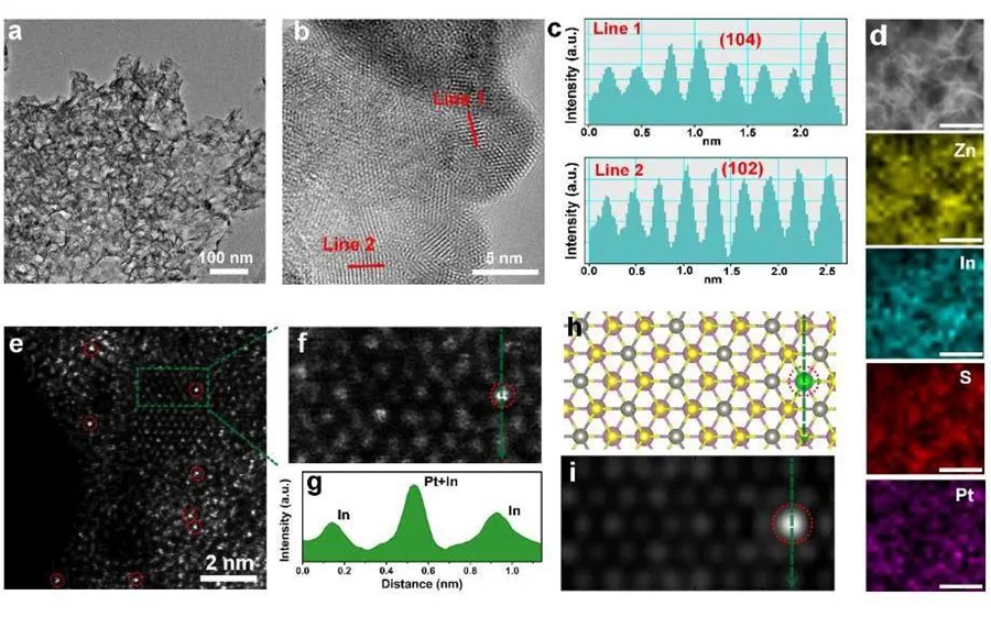 二維ZnIn2S4納米片表面構筑凸起狀鉑單原子形貌表征