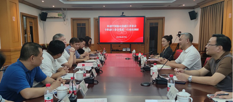 陳杰對(duì)金愛(ài)武一行的到來(lái)表示歡迎,感謝致公黨省委會(huì)對(duì)我校統(tǒng)一戰(zhàn)線工作的關(guān)心和支持。他指出,校致公黨委員會(huì)順利完成了新老交替和政治交接,新一屆委員會(huì)積極主動(dòng)作為,在強(qiáng)化思想引領(lǐng)、積極建言獻(xiàn)策、助力共同富裕示范區(qū)建設(shè)等方面取得了新成效。他強(qiáng)調(diào),學(xué)習(xí)貫徹省黨代會(huì)精神是當(dāng)前和今后一個(gè)時(shí)期的重要政治任務(wù),校致公黨委員會(huì)要進(jìn)一步凝聚思想共識(shí),引導(dǎo)黨派成員提高政治站位,把思想和行動(dòng)統(tǒng)一到省黨代會(huì)精神上來(lái),為迎接中共二十大勝利召開(kāi)營(yíng)造良好氛圍;要積極投身“兩個(gè)先行”生動(dòng)實(shí)踐,聚焦省委省政府重大戰(zhàn)略和學(xué)校發(fā)展重大任務(wù),在融入大局、服務(wù)大局、奉獻(xiàn)大局中彰顯黨派僑海特色優(yōu)勢(shì)和價(jià)值,為助力學(xué)校高質(zhì)量?jī)?nèi)涵式發(fā)展、建強(qiáng)“兩個(gè)基地”和推進(jìn)“雙一流”攻堅(jiān),以及經(jīng)濟(jì)社會(huì)發(fā)展進(jìn)一步提升能力、再創(chuàng)佳績(jī)。