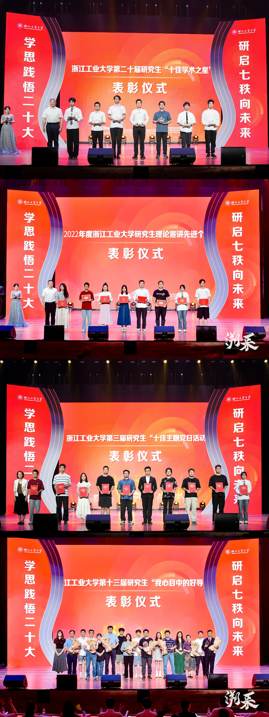 現場舉行了學校第十三屆研究生“我心目中的好導師”、第三屆研究生“十佳主題黨日活動”、第二十屆研究生“十佳學術之星”和2022年度研究生理論宣講先進個人等先進典型的表彰儀式。