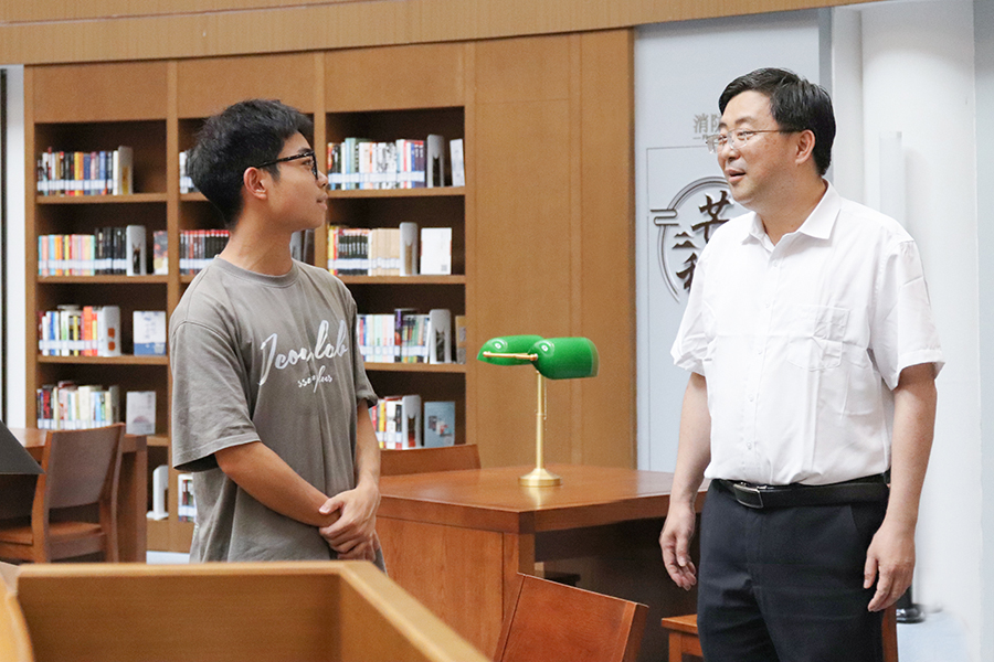 在圖書館,高翔聽取莫干山校區管委會負責人關于校區整體建設運行情況的匯報,聽取圖書館負責人的有關情況介紹,并與正在館內學習的學生交流學習情況。在研究生宿舍,高翔詳細詢問學生的生活、學習與科研狀況,勉勵他們勤奮學習,提高理想抱負,努力做出大成績。