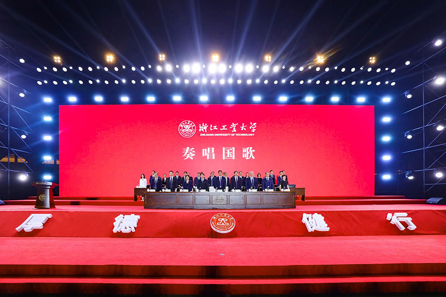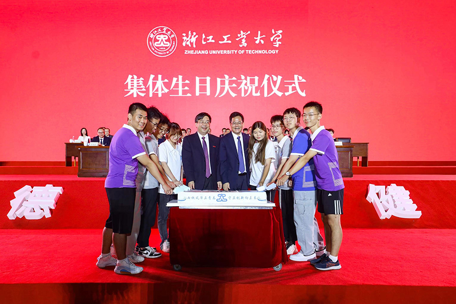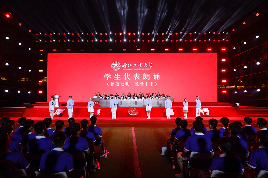 典禮上,還舉行了校徽佩戴儀式,學生代表朗誦了《積蘊七秩,筑夢未來》,舉行了集體生日慶祝儀式,全體合唱《浙江工業大學校歌》。