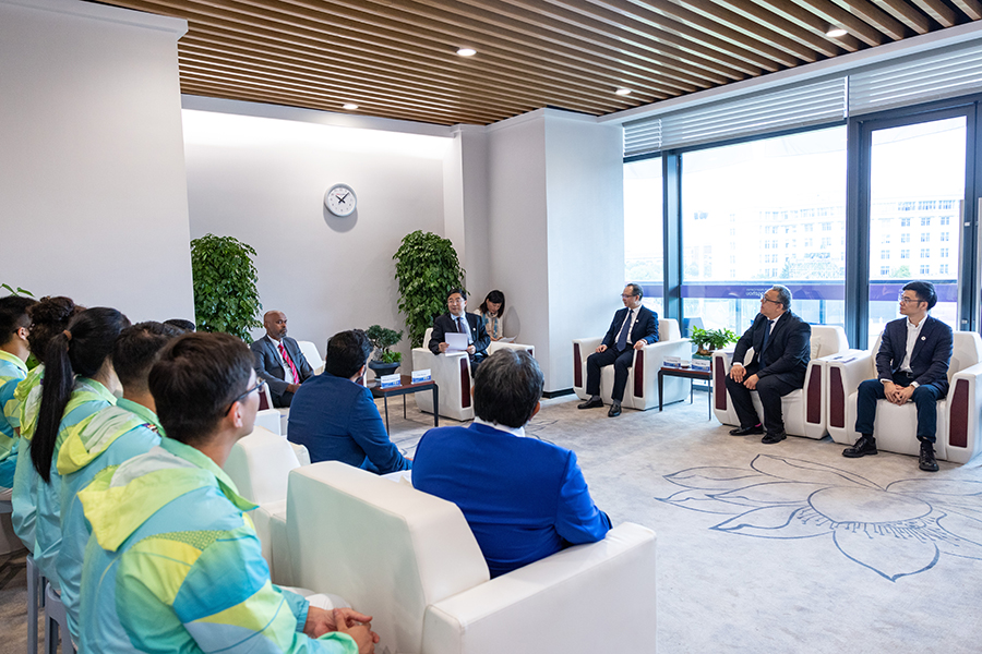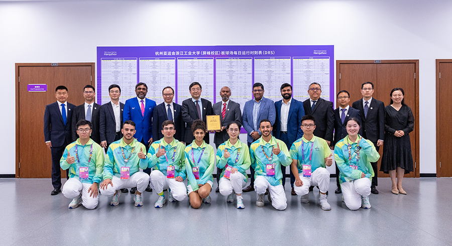 高翔向來賓介紹了學校的發展歷史和板球場的建設情況。他表示工大因亞運與板球結緣,希望浙工大板球場能夠給中國板球創造新的發展契機。學校將更好謀劃發展校園板球文化,形成工大板球特色品牌,以板球為媒,向世界展現工大魅力、中國實力和亞洲風采,并在亞洲板球理事會的大力支持和指導下,將屏峰校區板球場建設成為一個國際性的板球訓練基地,共同促進板球文化在學校、在中國的傳播和發展。