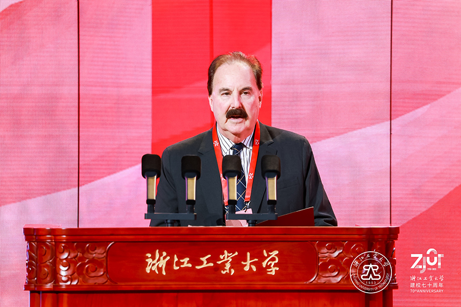海外高校代表,美國韋恩州立大學執行校長Mark Kornbluh表示,在風景如畫的杭州,浙江工業大學已經成為知識傳播的殿堂和開創性研究的中心。自1953年創立以來,浙江工業大學對學術卓越和知識創新的不懈追求,為學校贏得了中國最優秀工業大學之一的聲譽。2012年,浙江工業大學和韋恩州立大學開始了合作之旅,并取得了眾多成就和重大進展。他祝愿浙江工業大學未來更加輝煌,期待兩校的合作繼續成為教育推進社會進步發展和國際伙伴關系的光輝典范。