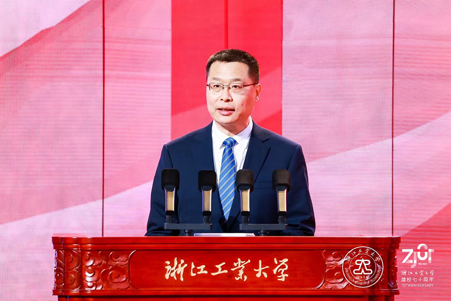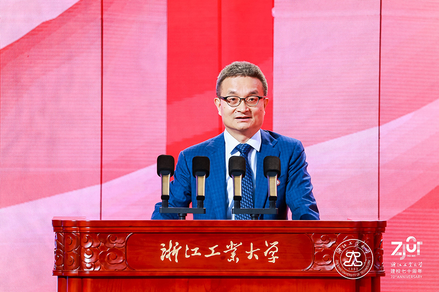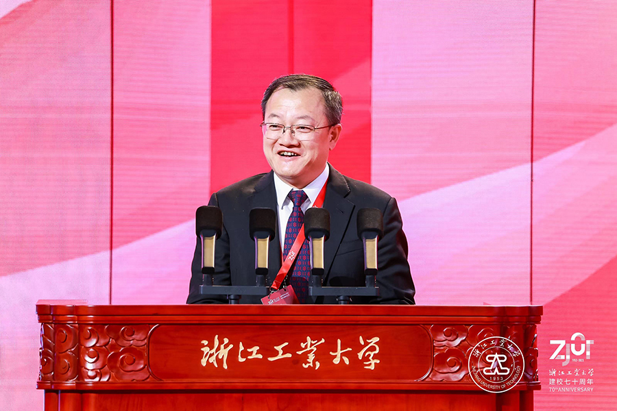 兄弟高校代表,浙江大學校長、中國科學院院士杜江峰表示,浙江工業大學始建于1953年,誕生在如火如荼的社會主義建設熱潮之中,發展于波瀾壯闊的改革開放和民族偉大復興之時,是我國東部沿海地區第一所省部共建高校、首批國家級“2011協同創新中心”牽頭高校和浙江省首批重點建設高校。浙工大與浙大比鄰而居、淵源深厚,兩校具有相契合的發展基因和文化底蘊,在化工、材料、能源、生物等很多領域合作成果豐碩,在人才培養、科學研究等方面攜手共進,形成了多層面、深層次的交流合作格局。他祝愿浙工大越辦越好,在建設高水平研究型大學的新征程上取得更大成就,在服務支撐浙江省“兩個先行”和“重要窗口”建設中展現更大作為,在服務高等教育強國建設、實現中華民族偉大復興、推動構建人類命運共同體的進程中鑄就新的輝煌!