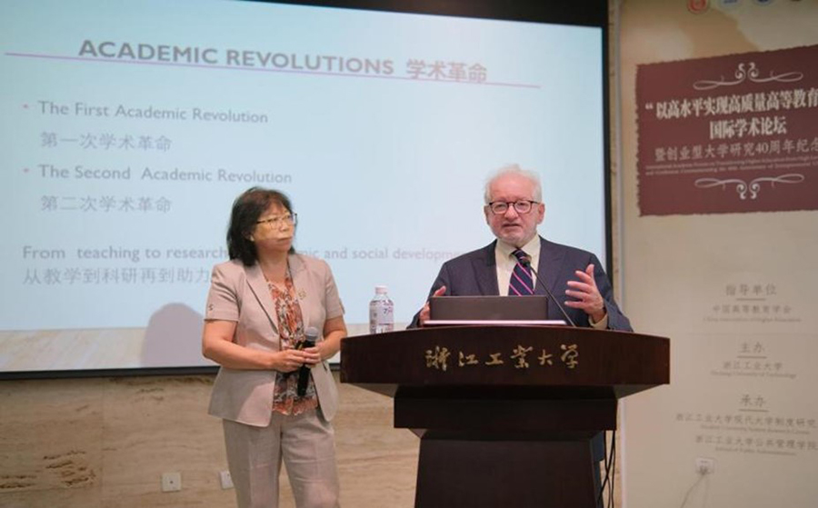 創(chuàng)業(yè)型大學(xué)理論、三螺旋模型創(chuàng)始人、國(guó)際三螺旋協(xié)會(huì)創(chuàng)始主席亨利·埃茨科威茲,中國(guó)高等教育學(xué)會(huì)學(xué)術(shù)發(fā)展咨詢委員會(huì)副主任兼秘書長(zhǎng)、中國(guó)教育科學(xué)研究院副院長(zhǎng)馬陸亭,南京工業(yè)大學(xué)校長(zhǎng)蔣軍成,中國(guó)高等教育學(xué)會(huì)學(xué)術(shù)發(fā)展咨詢委員會(huì)委員、浙江傳媒學(xué)院校長(zhǎng)徐小洲,杭州師范大學(xué)副校長(zhǎng)黃兆信,南京大學(xué)教育研究院教授龔放,中國(guó)高等教育學(xué)會(huì)學(xué)術(shù)發(fā)展咨詢委員會(huì)委員、南京師范大學(xué)教育科學(xué)學(xué)院院長(zhǎng)王建華,廈門大學(xué)教育研究院教授王洪才,芬蘭坦佩雷大學(xué)副教授蔡瑜琢,浙江農(nóng)林大學(xué)動(dòng)科學(xué)院院長(zhǎng)宋厚輝,福建師范大學(xué)教育學(xué)院教授付八軍等領(lǐng)導(dǎo)與專家參加會(huì)議并作主旨報(bào)告。