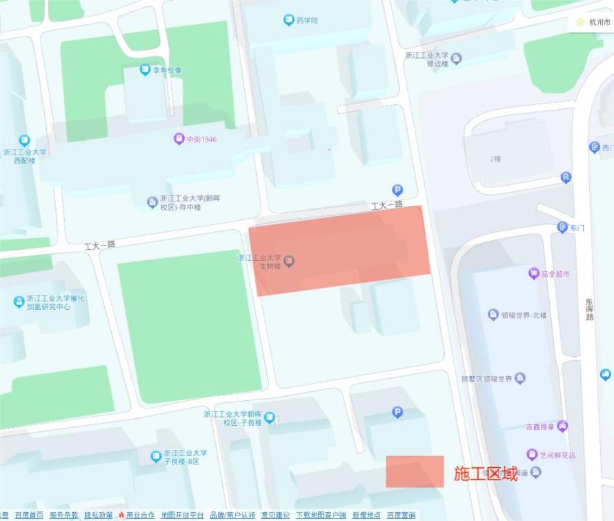 根據學校2023年修繕工程實施計劃,即將開工實施學校朝暉校區生物樓農藥生物制造平臺裝修工程。工程內容涉及朝暉校區生物樓五、六層室內頂地墻等裝修,施工區域見下圖。施工時間計劃2023年11月15日至2024年1月19日,工期65天。