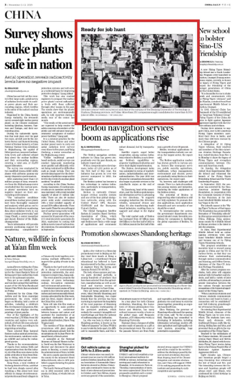 11月11日,《中國日報》以《Ready for job hunt》為題,報道了我校莫干山校區舉行的校園專場招聘會。