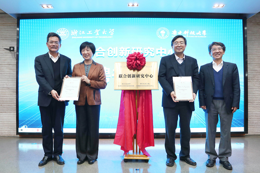 儀式上,“浙江工業大學能源與可持續發展研究院·南科大(長三角)大數據可持續發展研究中心”——聯合創新研究中心揭牌成立,薛其坤、蔡袁強為中心主任高翔和胡清頒發聘書。