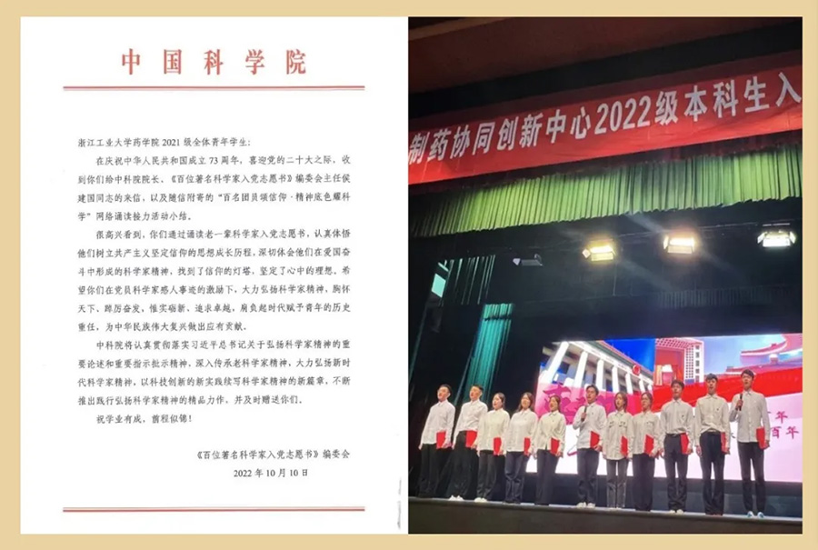中國科學院《百位著名科學家入黨志愿書》編委會給藥學院、綠色制藥協同創新中心青年學子的回信