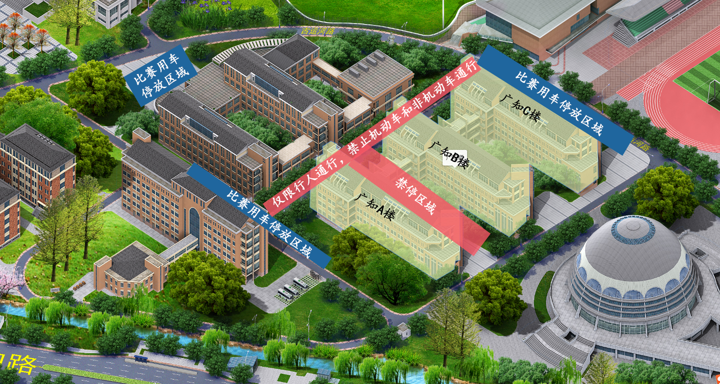 1.4月20-21日大賽期間,廣知A樓和B樓中間區域(包括連廊)、廣知樓與健行樓中道僅限行人通行,禁止機動車和非機動車通行;廣知C樓北面廣場、健行樓西面廣場以及語林樓北面道路為大賽用車停放區域,其他機動車不得停放。停放在上述區域的車輛請于4月19日12時前駛離;