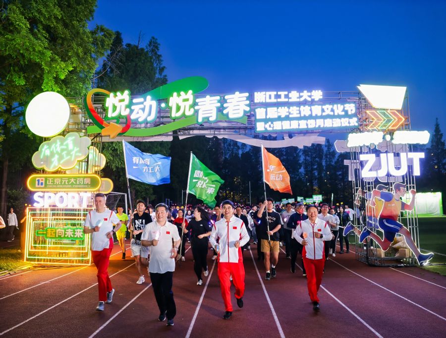 5月8日,“悅動·悅青春”學校首屆學生體育文化節暨心理健康宣傳月啟動儀式在朝暉校區田徑場舉辦,并同步在朝暉、屏峰、莫干山三大校區田徑場開啟音樂熒光跑。副校長張笑欽,校黨委副書記吳巨慧,黨委委員、宣傳部部長姜少飛出席,數千名學生參加。