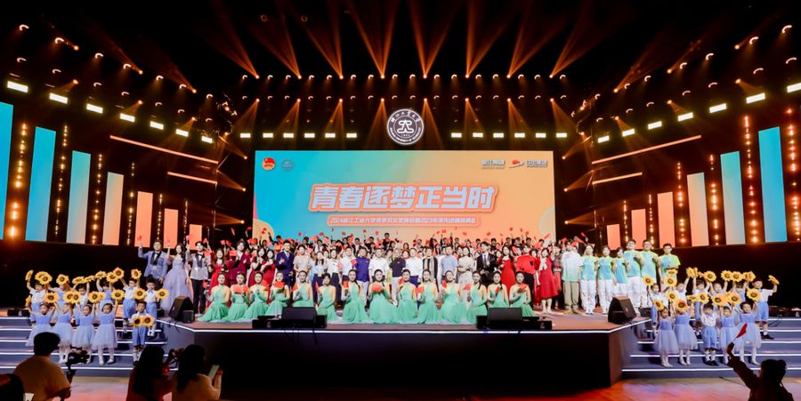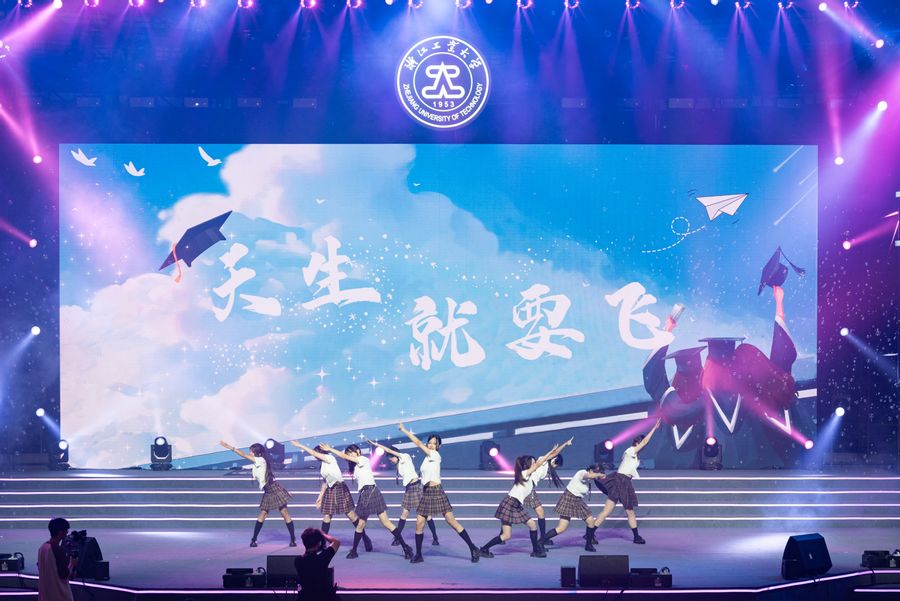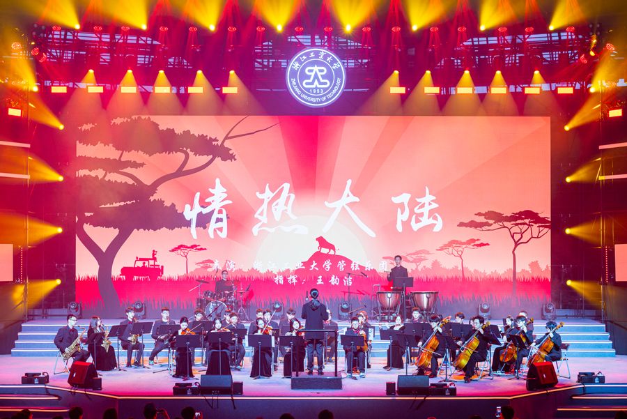 晚會分為“青春遇見 奔赴曠野”“循夢而行 向陽而生”“志懷家國 逐夢未來”三個篇章,在宏偉壯闊的管樂合奏《情熱大陸》中拉開序幕,活動現場氣氛熱烈。歌曲串燒《夏天》《第一天》帶領大家回憶起畢業季的點點滴滴,向即將畢業的學子們傳達了美好的祝愿。器樂合奏《華燈初上》和國風走秀《鏡鑒華裳》分別以民樂演奏和傳統服飾走秀的形式,展現了中華文化的深厚底蘊。合唱《如愿》講述了浙工大研支團連續十一年從“浙”里奔赴大山的青春故事。合唱《上春山》和朗誦《河床》展現了母親河的偉大和對祖國山河的贊美。晚會最后,一曲《我愛你中國》歌曲由校友代表、青年學生代表以及幼兒園的小朋友們共同演繹,傳遞了不同時代“工大人”的共同情感,表達了對祖國的熱愛和對未來的期待。