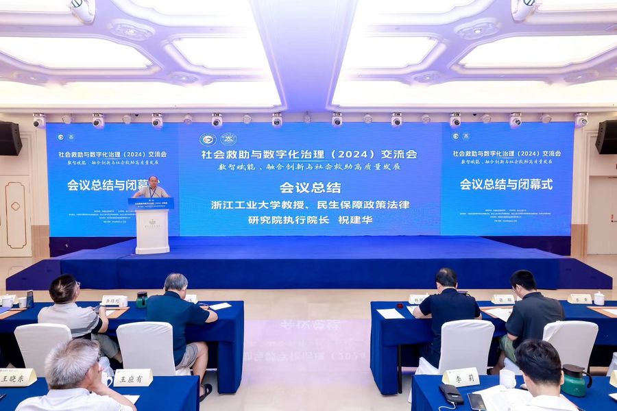 2024年8月24至25日,“社會救助與數字化治理(2024)交流會”在浙江杭州舉行。全國人大常委會委員、民盟中央副主席、中國社會保障學會會長、中國人民大學鄭功成教授,民政部社會救助司司長蔣瑋,浙江省民政廳黨組書記、廳長陳斌,浙江工業大學黨委書記蔡袁強等出席大會。民政部、聯合國兒童基金會、各地方民政與醫保等實務部門、全國多所高校、企業、社會組織的代表300余人參加了會議。與會代表圍繞“數智賦能、融合創新與社會救助高質量發展”的主題展開了深入討論。大會開幕式由浙江工業大學黨委委員、副校長陳耀主持。