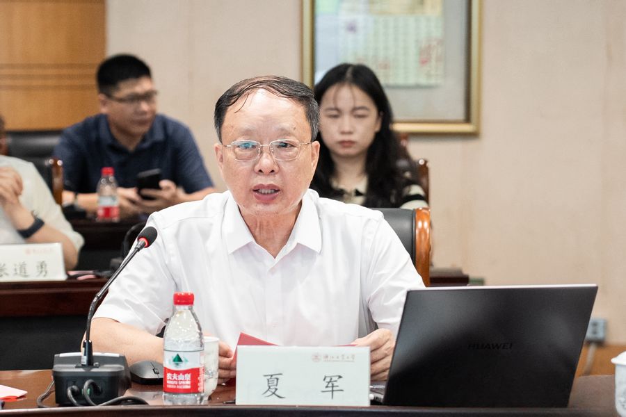 8月26日上午,中國(guó)科學(xué)院院士夏軍來(lái)校參加地理信息學(xué)院建設(shè)發(fā)展暨流域模擬器大模型研討會(huì),中國(guó)科學(xué)院院士周成虎、中國(guó)工程院院士鄧銘江應(yīng)邀出席線上會(huì)議。校長(zhǎng)、中國(guó)工程院院士高翔,副校長(zhǎng)張笑欽,國(guó)家基礎(chǔ)地理信息中心正高級(jí)工程師、莫干山地信實(shí)驗(yàn)室國(guó)際合作部負(fù)責(zé)人吳晨琛,以及武漢大學(xué)、中科院地理資源所的專(zhuān)家學(xué)者和學(xué)校相關(guān)職能部門(mén)負(fù)責(zé)人出席研討會(huì)。