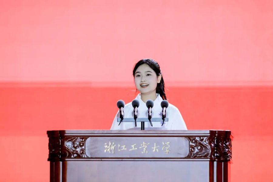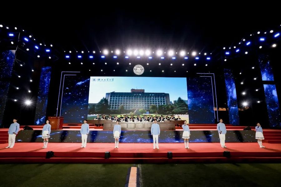 典禮上,還舉行了校徽佩戴儀式、學生代表朗誦、集體生日慶祝儀式,全體合唱《浙江工業大學校歌》。