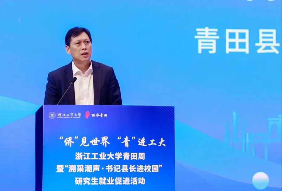 吳巨慧表示,高校是科技創新的策源地,也是人才培養的主陣地。地方經濟社會發展,特別是新質生產力的推進發展,需要科技創新賦能,渴求優秀人才助力。深化校地合作既是回應時代所需的強強聯合,更是把握時代脈搏的共贏之道。近年來,浙工大著力推進就業優先戰略,主動服務縣域基層特別是省內山區海島25縣的引才引智人才工作,積極推進“青春赴基層·奮進正當時”研究生高層次人才赴基層干事創業,賦能縣域經濟社會發展和振興鄉村事業。此次浙江工業大學青田周暨“溯采潮聲·書記縣長進校園”研究生就業促進系列活動,邀請青田縣領導走進浙工大校園,與廣大青年學生面對面交流,讓浙工大學子更好地領略地方的經濟發展、社會文化、科技創新、人才支持。他希望浙工大學子能賡續“艱苦創業、開拓創新、爭創一流”的精神傳統,在青田的廣闊舞臺上為強國建設、民族復興、鄉村振興貢獻浙工大人的青春力量。