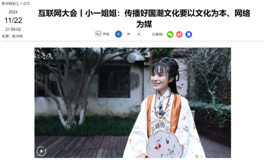 11月22日,新華網報道我校人文學院秦一老師參加2024年世界互聯網大會烏鎮峰會。秦一就如何運用互聯網更好地傳播國潮文化等問題進行了交流。