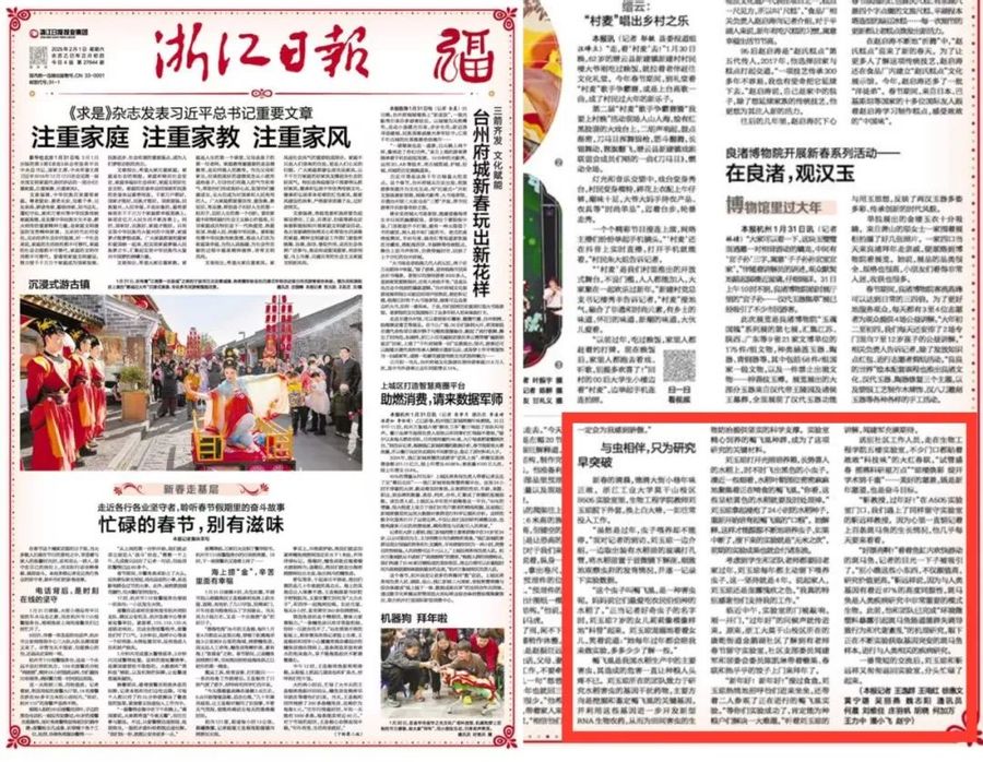 2月1日,《浙江日報》以《忙碌的春節,別有滋味》為題,報道了各行各業的堅守者,其中有來自浙江工業大學的科研工作者。他們堅守在自己的崗位上,用實際行動詮釋奉獻、展現奮斗。