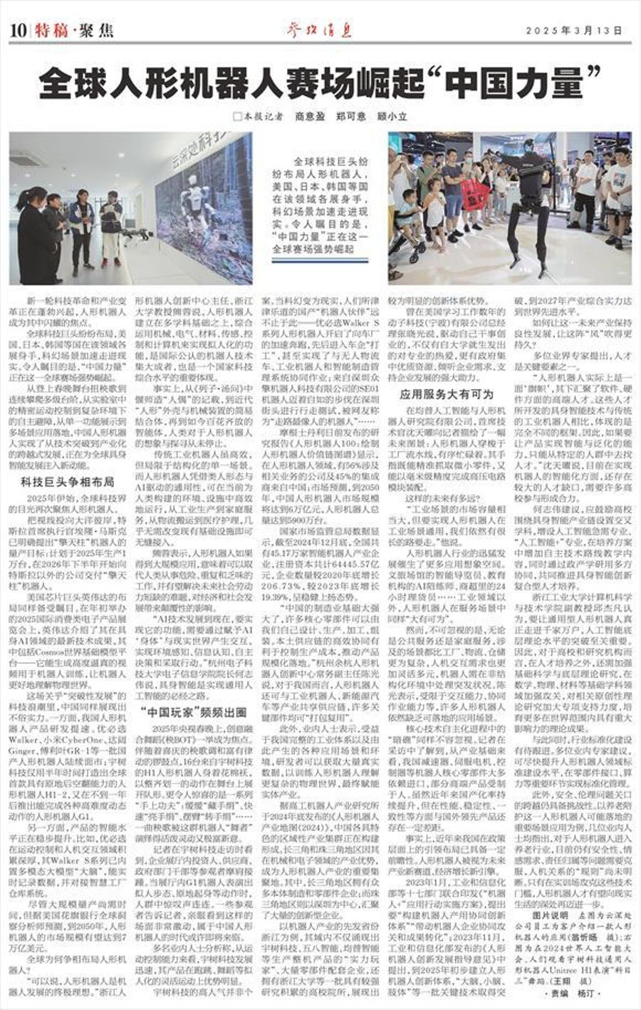 3月13日,《參考消息》第10版以《全球人形機器人賽場崛起“中國力量”》為題,報道全球各國科技巨頭布局人形機器人產(chǎn)業(yè),“中國力量”正在這一全球賽場強勢崛起。我校計算機科學(xué)與技術(shù)學(xué)院副教授邱杰凡接受采訪。邱杰凡認(rèn)為,要讓通用型人形機器人真正走進千家萬戶,人工智能底層理論水平的突破至關(guān)重要。因此,對于高校和研究機構(gòu)而言,在人才培養(yǎng)之外,還需加強基礎(chǔ)科學(xué)與底層理論研究,在數(shù)學(xué)、物理、材料等基礎(chǔ)學(xué)科領(lǐng)域加強攻關(guān),對相關(guān)原創(chuàng)性理論研究加大專項支持力度,培育更多在世界范圍內(nèi)具有重大影響力的理論成果。