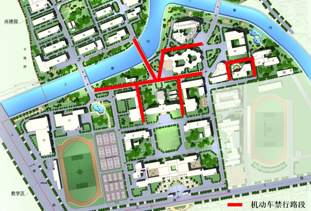 3.游泳館南面停車場作為校園交通班車停靠點(diǎn),泳客機(jī)動車和其它機(jī)動車不得進(jìn)入及停放; 學(xué)校交通班車停靠點(diǎn)由邵科館臨時(shí)調(diào)整至體育場西側(cè)停車場(游泳館南面);